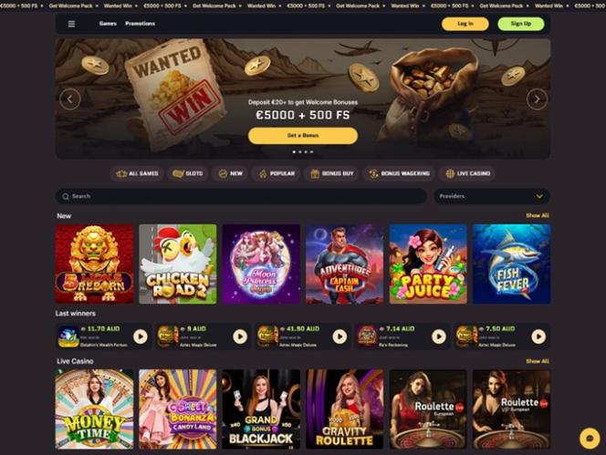 A estética geral do site é genuinamente interessante e envolvente. Os jogadores notarão imediatamente que a plataforma busca recriar o visual do Velho Oeste, com cartazes de procurados, potes de ouro e muitos cowboys e cowgirls.