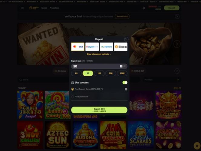 Mesmo com um programa de fidelidade muito interessante, o WantedWin Casino também oferece uma infinidade de promoções e bônus fantásticos para seus jogadores. Quem está começando agora será recebido com uma oferta de boas-vindas muito tentadora, enquanto os jogadores já cadastrados poderão aproveitar diversos outros bônus.