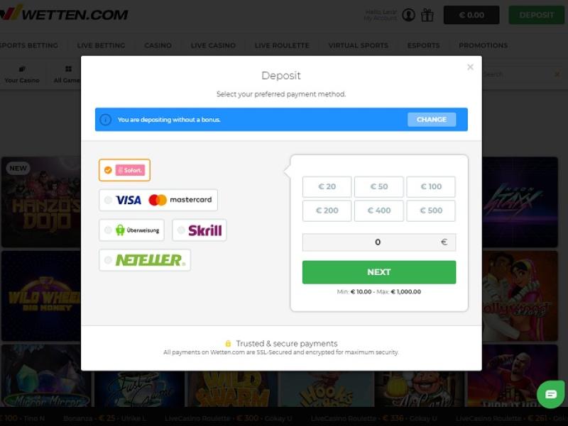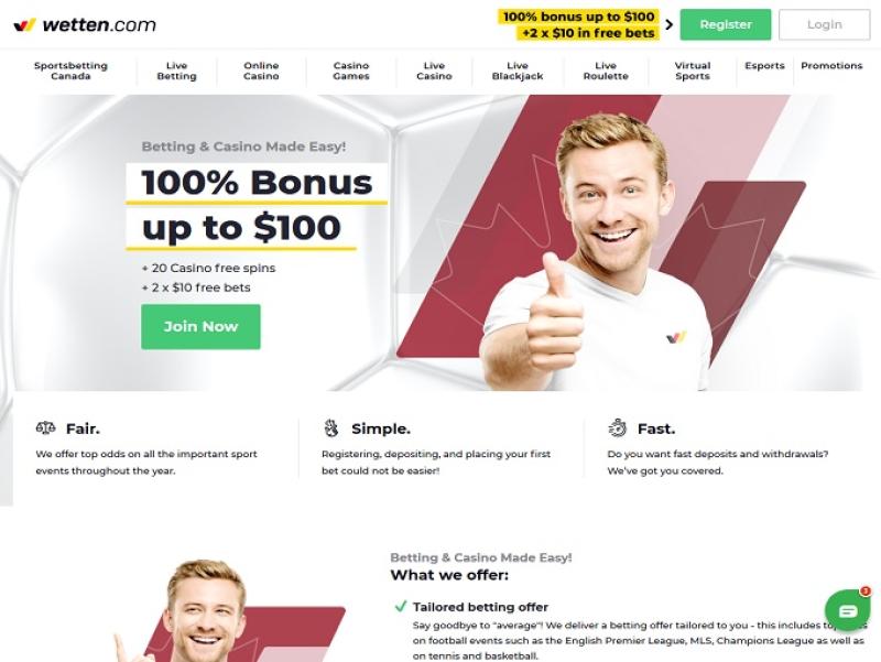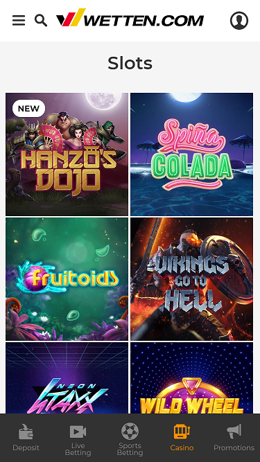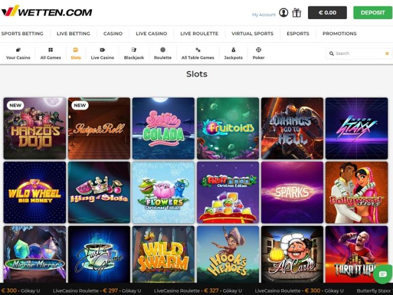 Além do cassino tradicional, a Wetten oferece aos seus jogadores uma seção completa de apostas esportivas. Um cassino ao vivo também está disponível.
