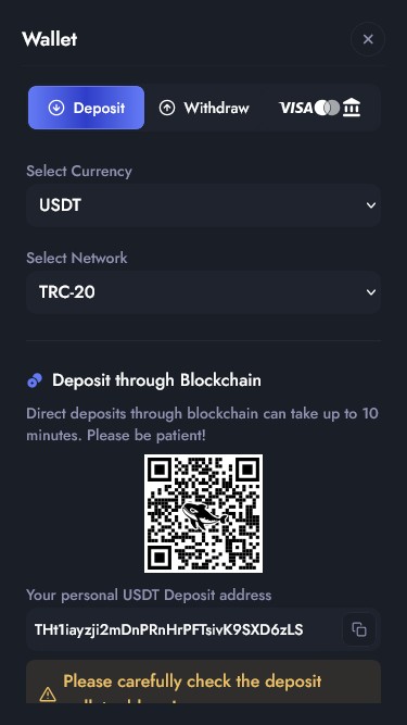 Os jogadores podem atualizar o endereço de sua carteira de criptomoedas antes de cada solicitação de saque.