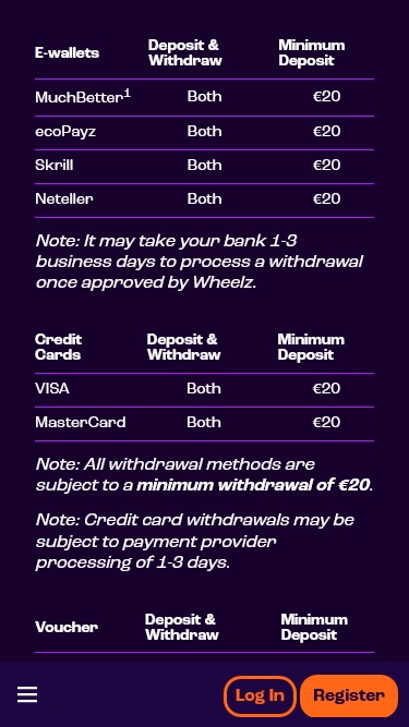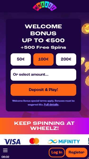 Abaixo está uma lista das promoções atualmente oferecidas no Wheelz Casino.
