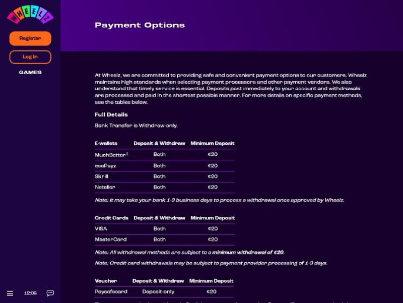 Gosto da variedade de jogos no cassino Wheelz, mas não gosto muito das recompensas. Claro que há cashbacks, acelerações e giros grátis, mas as recompensas quando você finalmente sobe de nível não valem a pena. 5 giros grátis em um caça-níqueis horrível, em vez de 40 giros grátis em um caça-níqueis com 243 maneiras, parece muito melhor. Minha conta aqui está fechada no momento por causa das muitas vezes que tentei esse recurso no Jammin Jars 2. Você poderia ter me dado o recurso Giga! Vários depósitos depois, decidi parar de jogar aqui e dar um fim ao Wheelz.
