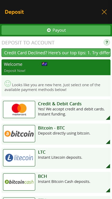 -  Jogadores de determinados países só podem fazer depósitos usando opções de criptoativos.