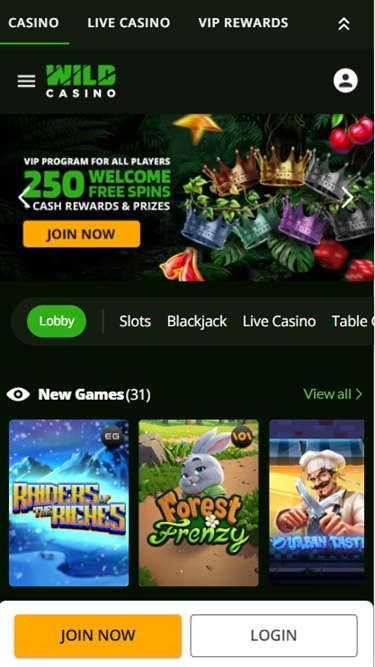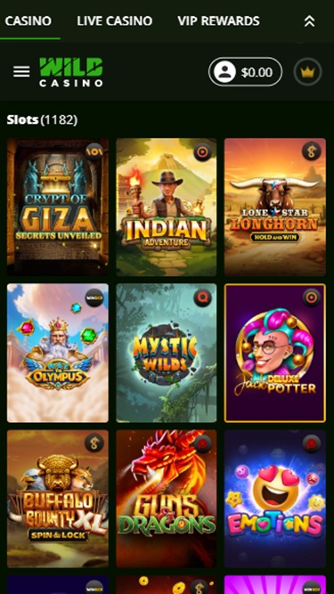 Wild Casino não recebeu o endosso do Wizard of Odds.