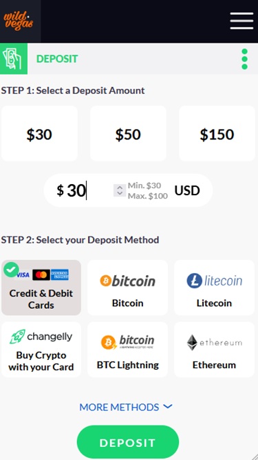 Opções bancárias no Wild Vegas Casino