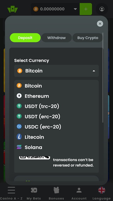 Os jogadores podem comprar criptomoedas usando métodos de pagamento tradicionais através do site.