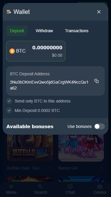 então é principalmente um cassino de criptomoedas, a interface do cassino é muito boa, eu gosto da barra de pesquisa no topo, acho que todos os cassinos deveriam ter uma pesquisa no topo... eles parecem ter muitos provedores, o registro foi fácil, muito fácil, e o bônus também funciona! Tudo o que preciso fazer é ativá-lo na seção de bônus quando me registrei... no geral, tenho um bom pressentimento sobre este cassino e pretendo tentar a sorte na próxima semana (quero dizer, mais do que as 20 rodadas grátis que ganhei). No geral, um dos cassinos mais interessantes que já vi surgir nos últimos meses