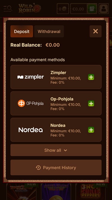 Gostaríamos também de mencionar que todo o site do WildRobin Casino foi totalmente otimizado para uma experiência de jogos e apostas em dispositivos móveis. Isso significa que tanto dispositivos iOS quanto Android podem acessar todos os jogos e seções do cassino sem problemas e sem a necessidade de baixar aplicativos adicionais.