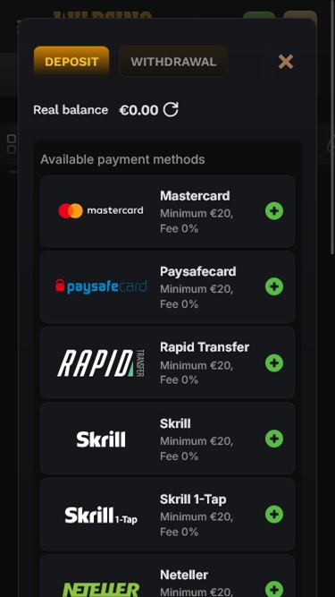 Em relação aos métodos de pagamento, a marca permite que os jogadores utilizem opções tradicionais e modernas para depósitos e saques. Visa , Mastercard , Skrill , Neteller , Jeton , MiFfinity e transferência bancária estão disponíveis como métodos convencionais. Além disso, os jogadores também podem usar criptomoedas modernas como Bitcoin , Litecoin , Dogecoin e Tether como opções de pagamento válidas.