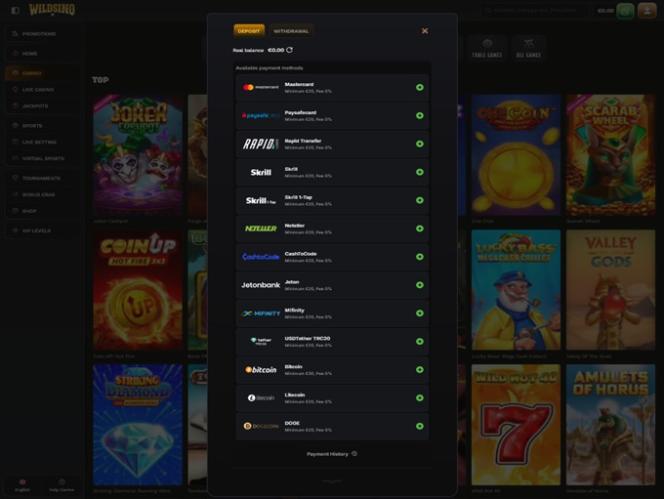 Wildsino é um cassino online que aceita criptomoedas e possui licença nas Filipinas, oferecendo uma ampla variedade de jogos e opções de apostas para jogadores em diversos países, incluindo Noruega, Finlândia, Austrália, Canadá e muitos outros.