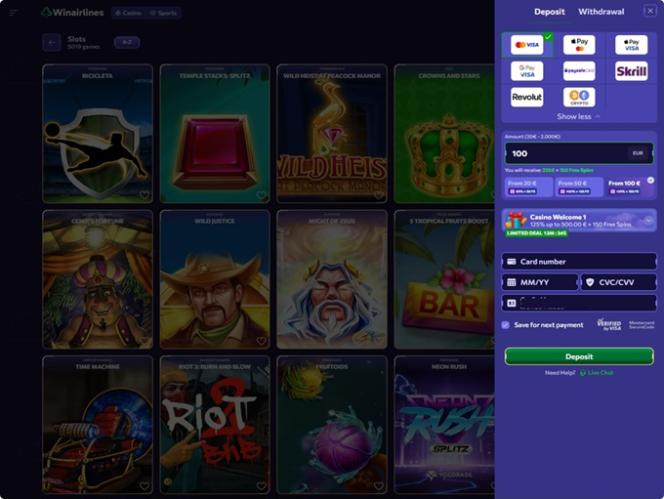 Prepare-se para embarcar em um avião luxuoso com uma equipe de primeira linha, cuja única missão é tornar sua viagem pelos céus a mais agradável possível. O Winairlines é um cassino online que incorpora todas as vantagens dos tempos modernos, o que significa que tanto os frequentadores assíduos de cassinos quanto os apostadores esportivos têm algo a esperar. E, como bônus adicional, a equipe também se certifica de otimizar totalmente seu produto para os entusiastas de criptomoedas.