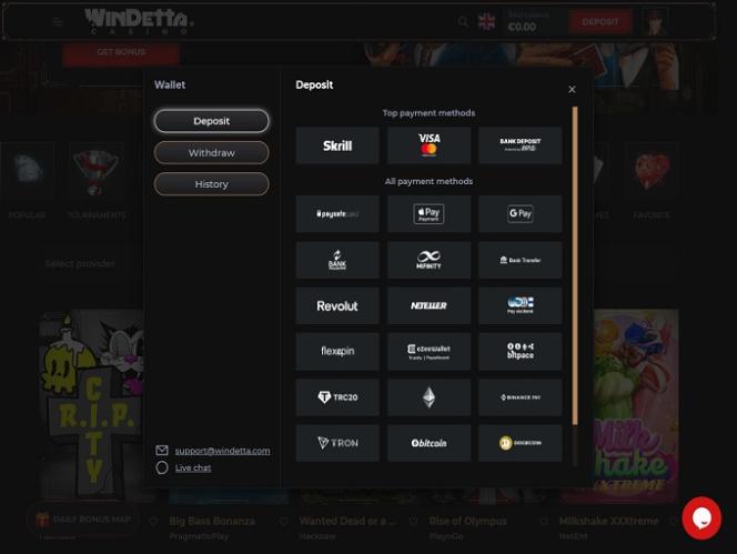 O Windetta Casino é um cassino online pertencente a uma empresa estabelecida sob as leis de Curaçao, operando sob a licença Antillephone NV. O público-alvo do cassino são jogadores da Alemanha, Áustria, Canadá, Espanha e Finlândia, mas este interessante site de jogos de azar online também pode atrair jogadores de outras jurisdições.