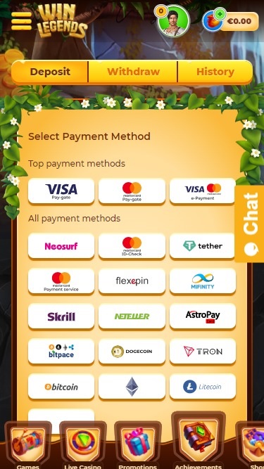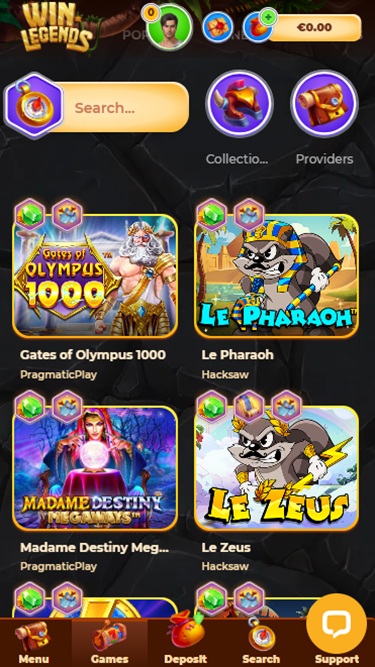 A plataforma do cassino é otimizada para múltiplos dispositivos e fácil de usar. Considerando que o operador oferece uma biblioteca de jogos enorme, uma excelente categorização é um grande ponto positivo, e o WinLegends causou uma boa primeira impressão.