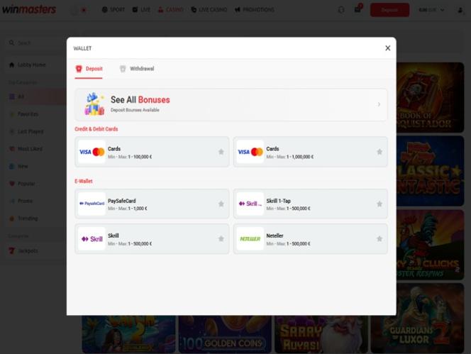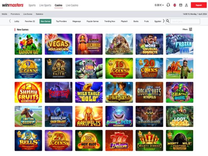 O Winmasters Casino é alimentado por Microgaming, Net Entertainment, Playtech, 1x2gaming, Big Time Gaming, ELK Studios, Evolution Gaming, Ezugi, Genesis Gaming, iSoftBet, lightningboxgames, Play'n GO, playson, Relax Gaming, Thunderkick, Endorphina, Wazdan, Realistic Games, Betgames, Booming Games, Stakelogic, Pragmatic Play, Nolimit City, Felt Gaming, Red Tiger Gaming, Red Rake Gaming, Skillzzgaming, Fantasma Games, SYNOT Games, Kalamba, Revolver Gaming, Skywind, Spinmatic, Spadegaming, Triple Edge Studios, Northern Lights Gaming, Stormcraft Studios, Switch Studios, OneTouch, Electric Elephant Games, Pocket Games Soft, Dreamtech Gaming, All41 Studios, Gluck Games, Gameburger Studios, Pulse 8 Studios, Neon Valley Studios, Golden Rock Studios, Spearhead Studios, Swintt, SpinPlay Games, HungryBear Gaming, Real Dealer Studios, GONG Gaming, Blue Guru Games, Lady Luck Games, Buck Stakes Entertainment, Games Global, Amusnet Interactive, Wizard Games, 2by2 Gaming, Ash Gaming, Blueprint Gaming, CT Interactive, Leander Games, Merkur Gaming, Pariplay, Push Gaming, Tom Horn Gaming, Reel Time Gaming, Authentic Gaming, BF Games, Bally Wulff, Iron Dog Studio, Old Skool Studios, Foxium, Just For The Win, Storm Gaming Technology, PearFiction Studios, Wild Streak Gaming, Slingshot Studios, Fortune Factory Studios, Jade Rabbit Gaming, STHLM Gaming, 4ThePlayer, Gamevy, Crazy Tooth Studio, ReelPlay, Zonelock, Alchemy Gaming, Rarestone Gaming, Plank Gaming, Black Pudding Games, Snowborn Games, Hacksaw Gaming, Max Win Gaming, Gold Coin Studios, Half Pixel Studios, SilverBack Gaming, Aurum Signature Studios, Armadillo Studios, FlipLuck, Area Vegas, Leap Gaming, GoldenRace, Kiron, Wishbone Games, LiveG24, Print Studios, HammerTime Games, Four Leaf Gaming, INO Games, Nailed It! Games, Live 5, Neko Games, Reel Kingdom, Oros Gaming and JVL e seus jogos de cassino são fornecidos por meio de uma plataforma baseada na web, bem como por meio de um site móvel.