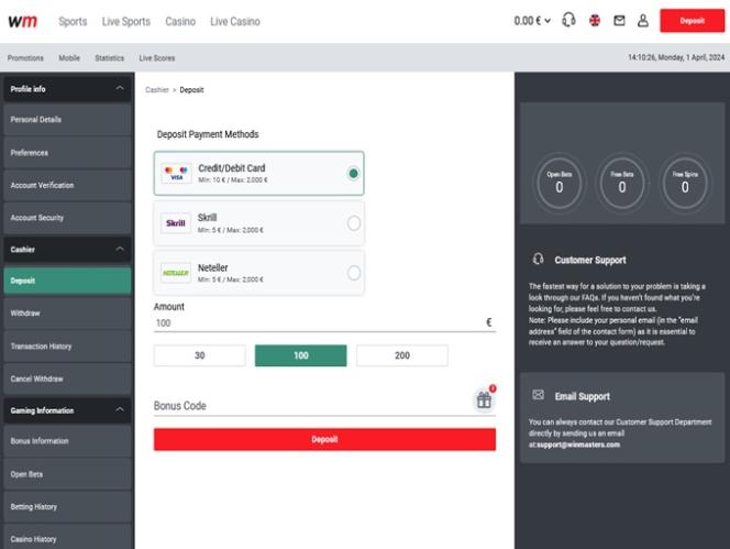 Tenho uma conta na Winmasters desde o verão passado, quando eles receberam a licença. Fiz alguns depósitos lá, pequenos, recebendo o bônus de boas-vindas, mas sem sucesso, para tentar o saque. Não tenho nenhuma reclamação sobre o suporte (eles respondem super rápido às mensagens offline, agora têm chat ao vivo!).