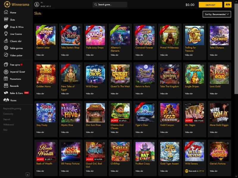 O Winnerama Casino é um cassino online voltado principalmente para apostadores do Canadá, Nova Zelândia, Suíça e Austrália, e oferece localização do site em inglês, alemão, francês e espanhol.