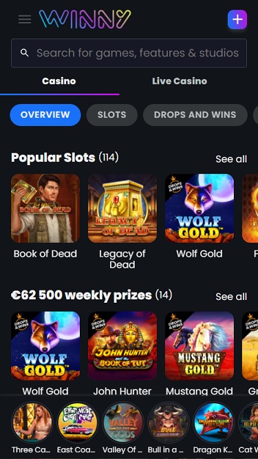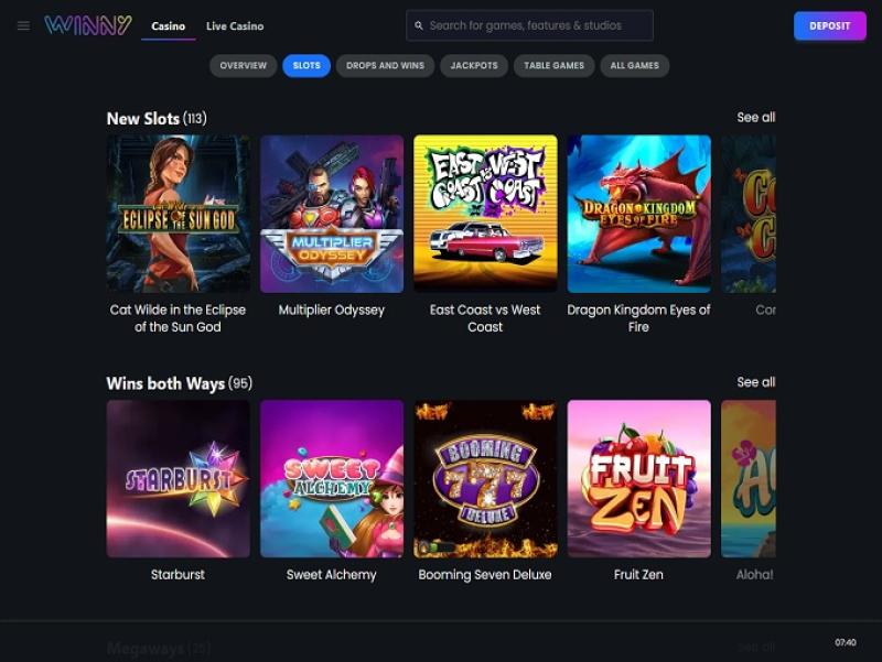O Winny Casino possui uma biblioteca épica de slots, com mais de 2.200 jogos disponíveis no momento desta análise. Você encontrará mais de três dezenas de desenvolvedores, incluindo nomes como NetEnt, Play'n GO, Quickspin, Yggdrasil e outros. A maioria dos jogos pode ser jogada em dispositivos móveis, e também há jackpots progressivos para serem ganhos.