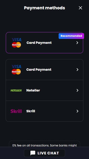 Embora o cassino não tenha um programa de fidelidade típico, oferece 10% de cashback semanal sobre o valor apostado em caça-níqueis. O cashback é pago às quintas-feiras.