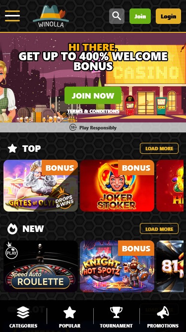 Capturas de tela do Winolla Casino