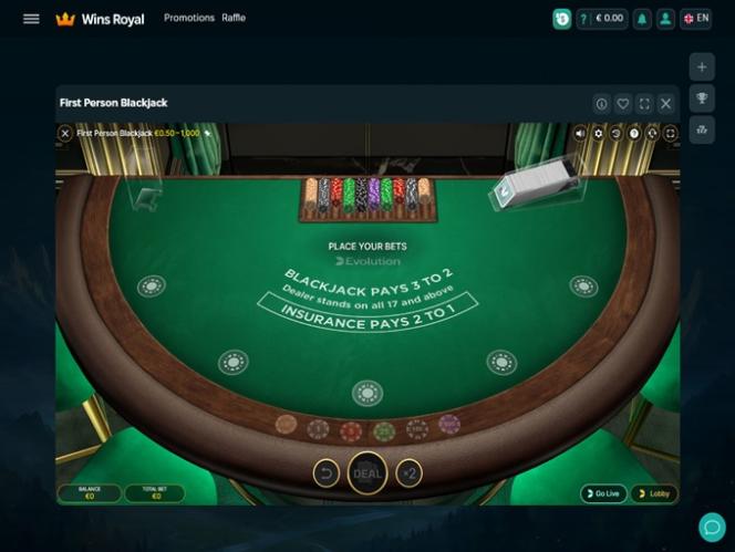 Mais informações sobre Wins Royal Casino's Evolution Gaming Blackjack