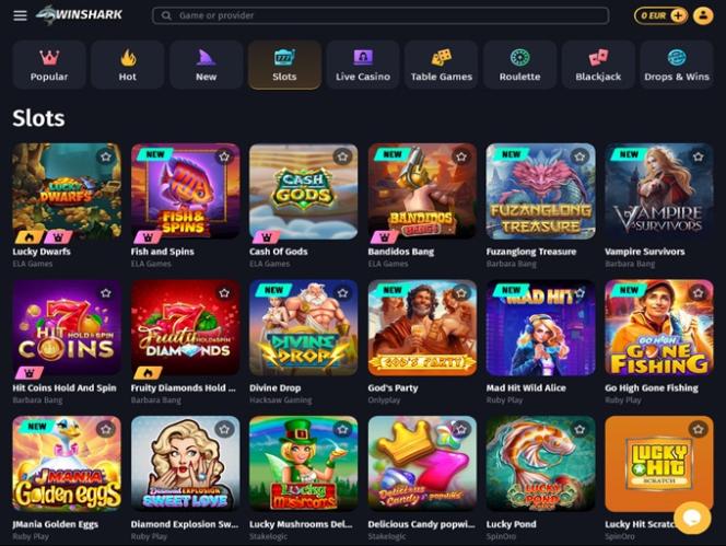 O WinShark Casino apresenta uma vasta seleção de fornecedores de software, e você pode jogar jogos de mais de 120 estúdios disponíveis . Gigantes da indústria como Pragmatic Play , Play'n GO , Playtech , Evolution e Yggdrasil estão presentes, juntamente com vários outros nomes que valem a pena conferir, como Bally Wuff, Golden Hero e Groove Gaming.