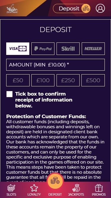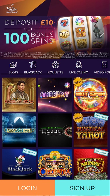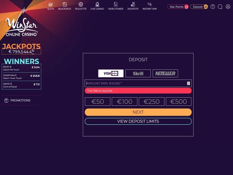 WinStar não aceita jogadores dos seguintes países: Afeganistão, Alabama, Ilhas Aland, Alasca, Alberta, Alderney, Argélia, Angola, Argentina, Arizona, Arkansas, Armênia, Austrália, Bahrein, Bangladesh, Barbados, Bélgica, Benim, Botsuana, Colúmbia Britânica, Brunei, Burkina Faso, Burundi, Califórnia, Camboja, Camarões, Canadá, Cabo Verde, República Centro-Africana, China, Colômbia, Colorado, Comores, Connecticut, Ilhas Cook, Costa Rica, Costa do Marfim, Cuba, Curaçao, Chipre, DC, Delaware, Dinamarca, Djibuti, Egito, Eritreia, Estônia, Etiópia, Ilhas Faroé, Flórida, França, Guiana Francesa, Polinésia Francesa, Gâmbia, Geórgia, Geórgia, Gana, Grécia, Groenlândia, Granada, Guadalupe, Guam, Guiana, Havaí, Ilha Heard e Ilhas McDonald, Hong Kong, Idaho, Illinois, Índia, Indiana, Indonésia, Iowa, Irã, Iraque, Israel, Itália, Kansas, Cazaquistão, Kentucky, Quênia, Coreia, República Popular Democrática da, Coreia, República da, Kuwait, Quirguistão, Laos, Líbano, Libéria, Líbia, Liechtenstein, Luisiana, Macau, Maine, Malásia, Mali, Manitoba, Ilhas Marshall, Martinica, Maryland, Massachusetts, Mauritânia, México, Michigan, Minnesota, Mississipi, Missouri, Mônaco, Mongólia, Montana, Marrocos, Mianmar, Namíbia, Nauru, Nebraska, Holanda, Nevada, Nova Brunswick, Nova Caledônia, Nova Hampshire, Nova Jersey, Novo México, Nova Iorque, Terra Nova e Labrador, Nicarágua, Níger, Nigéria, Carolina do Norte, Dakota do Norte, Territórios do Noroeste, Noruega, Nova Scotia, Nunavut, Ohio, Oklahoma, Omã, Ontário, Oregon, Paquistão, Palácio, Palestina, Panamá, Papua Nova Guiné, Pensilvânia, Filipinas, Polônia, Portugal, Ilha do Príncipe Eduardo, Porto Rico, Catar, Quebec, Reunião, Rhode Island, Romênia, Rússia, Ruanda, São Pedro e Miquelon, Samoa, São Tomé e Príncipe, Saskatchewan, Arábia Saudita, Sérvia, Serra Leoa, Cingapura, Ilhas Salomão, Somália, África do Sul, Carolina do Sul, Dakota do Sul, Espanha, Sri Lanka, Sudão, Suriname, Suécia, Síria, Taiwan, Tajiquistão, Tanzânia, Tennessee, Texas, Tailândia, Ir, Tunísia, Peru, Turcomenistão, Uganda, Ucrânia, Emirados Árabes Unidos, Estados Unidos, Ilhas Menores Distantes dos Estados Unidos, Utah, Uzbequistão, Vanuatu, Vaticano, Vermont, Vietnã, Ilhas Virgens Britânicas, Ilhas Virgens, EUA, Virgínia, Washington, Virgínia Ocidental, Wisconsin, Wyoming, Iémen, Território de Yukon, Zâmbia e Zimbábue.