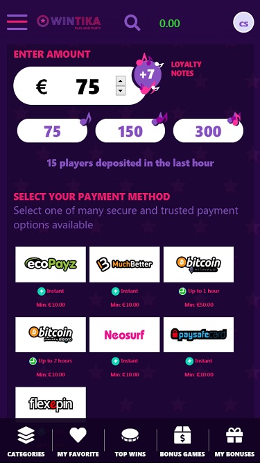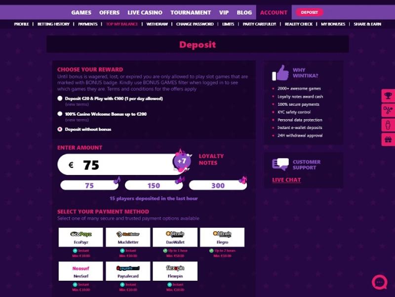 GosteiGosto de jogar caça-níqueis e jogos com crupiê ao vivo no Wintika Casino. Fiz um depósito de 10 euros, o valor mínimo para receber um bônus. Às vezes, ganho bônus sem fazer depósito, o que é muito legal. Também gosto dos torneios deles.