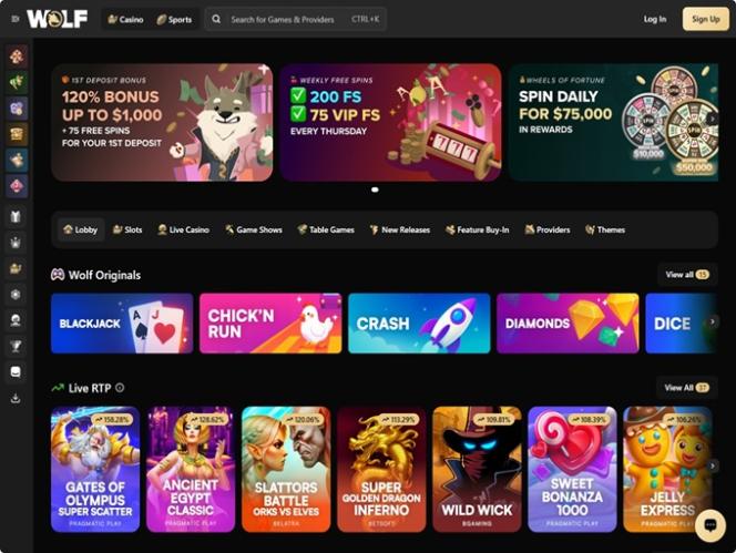 Wolf.io é um cassino online completo que oferece uma enorme variedade de jogos, incluindo caça-níqueis com dinheiro real, jogos com crupiê ao vivo, jogos de mesa e jogos de azar instantâneos, sendo seu principal diferencial a possibilidade de usar moedas fiduciárias e criptomoedas para gerenciar fundos. A marca aceita jogadores da Alemanha, Áustria, Suíça , Nova Zelândia e Finlândia , e os convida a experimentar todos os jogos fantásticos e bônus tentadores.