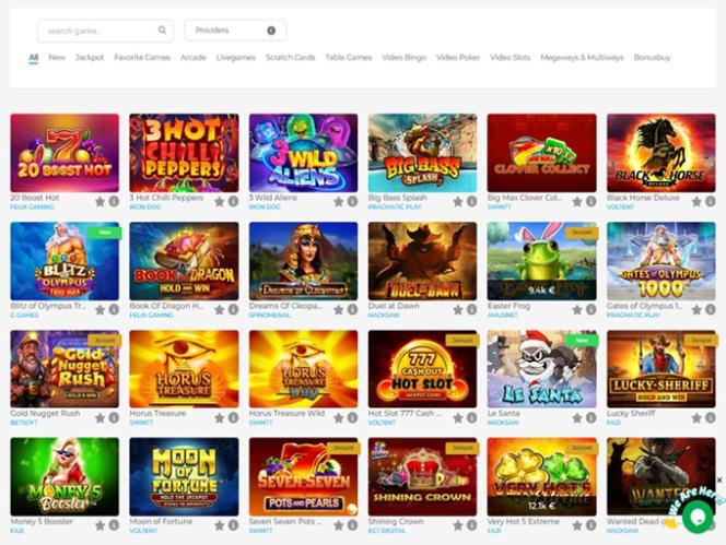 Como mencionado anteriormente, o operador colabora com uma ampla rede de fornecedores. Graças a isso, o lobby do Wolfy Casino é altamente diversificado e adequado a todos os perfis de consumidores. Red Tiger , Microgaming, Yggdrasil e Relax Gaming são apenas alguns dos nomes encontrados no catálogo.
