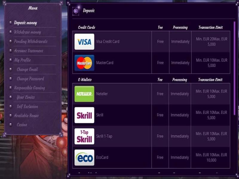 Registrei-me e depositei com o Skrill e tive os mesmos problemas que o usuário que já comentou nesta avaliação: o depósito não foi exibido na minha conta. Entrei em contato com o suporte e eles disseram que precisavam verificar com o Skrill e entrar em contato comigo em alguns dias ou algo assim. Finalmente, recebi meu depósito + bônus 3 dias depois :/. Não sei se foi um problema técnico e se já foi resolvido, mas não depositarei novamente neste cassino.