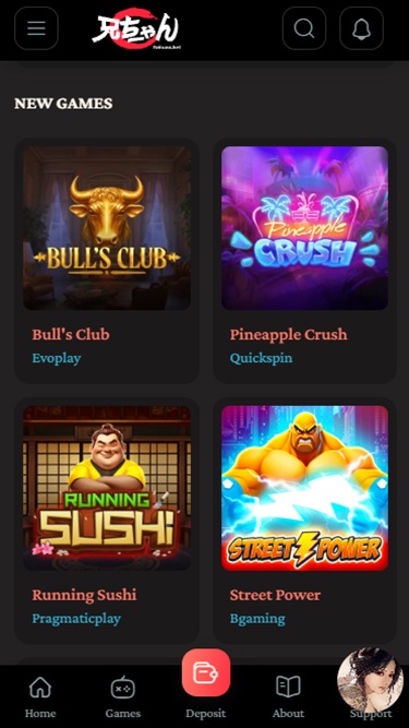Os jogadores podem navegar por todo o site em inglês, japonês, chinês, filipino ou coreano. Se você quiser jogar todos os jogos no seu smartphone ou tablet, ficará feliz em saber que todo o conteúdo foi otimizado para dispositivos Android e iOS. Tudo funciona perfeitamente de forma nativa pelo navegador, então você não precisa baixar nenhum aplicativo separado.
