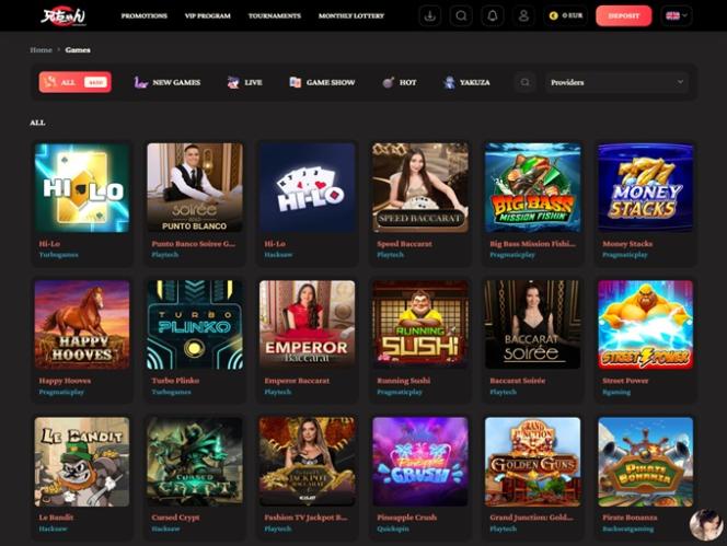 O cassino Yakuza.bet certamente não deixa a desejar nesse quesito, já que seus jogadores podem desfrutar de jogos de mais de 70 desenvolvedores de software exclusivos do setor. Seu catálogo inclui nomes lendários e diversos outros estúdios que valem a pena conferir.