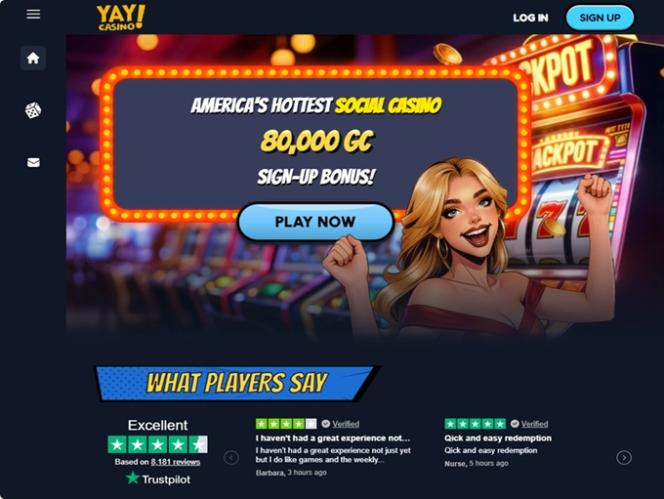 O Yay Casino é um enorme cassino social que aceita jogadores dos Estados Unidos, oferecendo uma ampla seleção de caça-níqueis no estilo cassino. A marca apresenta diversas promoções e bônus, além de inúmeros eventos e torneios onde os jogadores podem participar e competir pelos prêmios mais exclusivos.