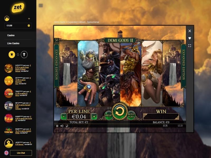 A biblioteca de slots da Zet está entre as maiores que já vimos, com mais de 2.200 jogos de fornecedores como Microgaming, NetEnt, NYX e muitos outros. Ao todo, são mais de 30 desenvolvedores de slots, e você encontrará diversas propriedades licenciadas e exclusivas. Infelizmente, não encontrei nenhum jackpot progressivo. Os slots para dispositivos móveis também são numerosos, permitindo que você jogue em seu smartphone ou tablet.