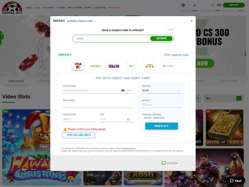 Opções bancárias no ZodiacBet
