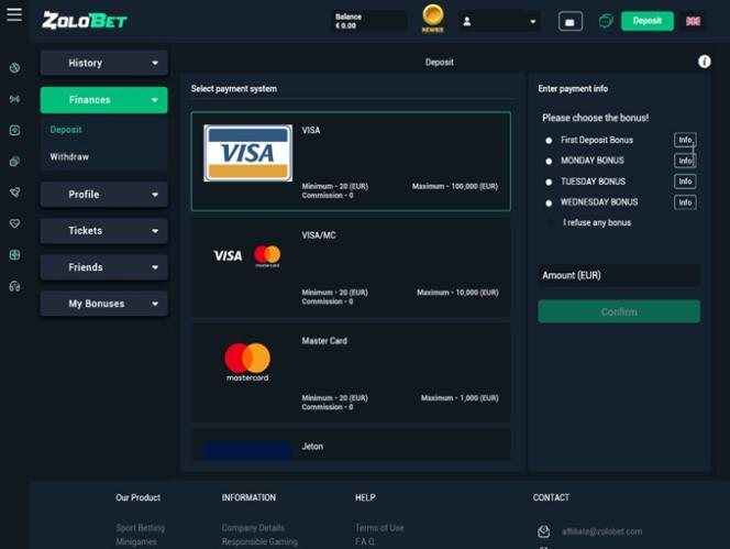 Em relação à acessibilidade de pagamento, os jogadores podem depositar e sacar de seus saldos no cassino usando vários métodos de pagamento, incluindo diversas criptomoedas como Bitcoin , Cardano , Ethereum , Litecoin , Solana , Tether e Ripple . É claro que também estão disponíveis inúmeros métodos bancários tradicionais, como Visa , Mastercard , transferência bancária e Apple Pay .