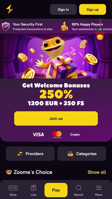 O Zoome Casino é um cassino online oferecido pela Dama NV, uma operadora de jogos de azar experiente, empresa estabelecida sob as leis de Curaçao, regulamentada e licenciada pela Antillephone NV.