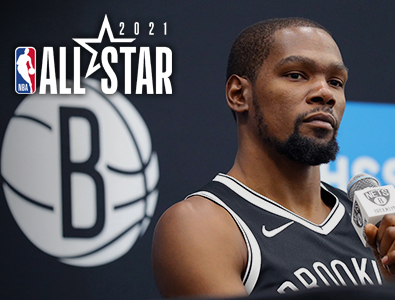 Kevin Durant é titular e capitão do time do Leste no All-Star Game de 2020-2021. Durant joga atualmente como ala no Brooklyn Nets . Até segunda-feira, 1º de março de 2021, ele tinha médias de 29,0 pontos, 5,3 assistências e 7,3 rebotes por jogo. Devido a uma lesão, ele não participará da partida, mas escolherá os jogadores para o seu time no All-Star Game de 2020-2021, que acontecerá em 4 de março de 2021. Kevin foi substituído por Domantas Sabonis.