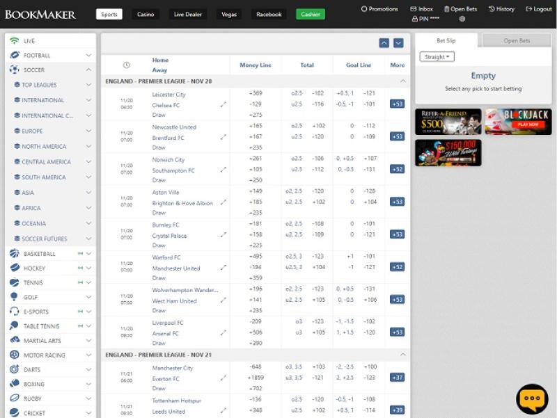 Originalmente estabelecida online em 1996, a Bookmaker Sports é considerada pioneira e líder no setor de apostas esportivas online. É reconhecida mundialmente por profissionais e especialistas do ramo como "A Origem das Linhas", desde antes mesmo da internet se tornar um fenômeno.