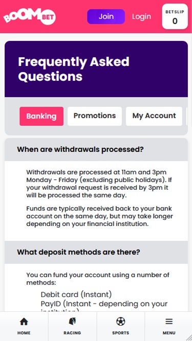 Embora a BoomBet não ofereça a mais ampla variedade de opções bancárias, os métodos disponíveis são populares entre os jogadores australianos e neozelandeses, então você provavelmente encontrará uma opção de pagamento adequada às suas necessidades.