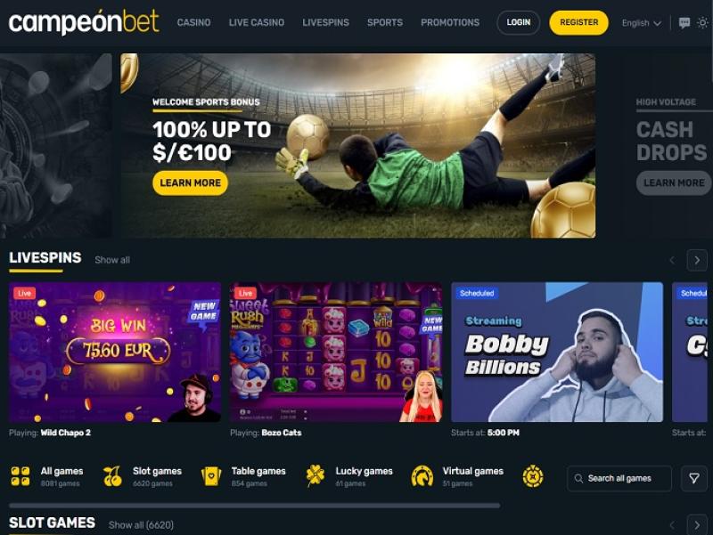 Além dos serviços de apostas esportivas, a Campeon Bet também oferece um excelente cassino online com jogos como: pôquer, bacará, blackjack, Hi Lo, Rocket Dice, roleta, caça-níqueis, Plinko, raspadinhas, jogos de mesa, vídeo bingo, craps, vídeo pôquer, caça-níqueis em vídeo e outros jogos de mesa. Há também a opção de cassino ao vivo. Essas são ótimas opções para quem deseja ter seus jogos de cassino clássicos disponíveis ao fazer suas apostas esportivas. Considere esta casa de apostas/cassino como um local completo para todas as suas necessidades e desejos de entretenimento com apostas.