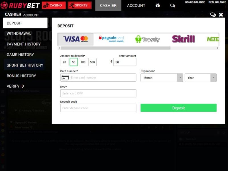 Opções bancárias no RubyBet Casino