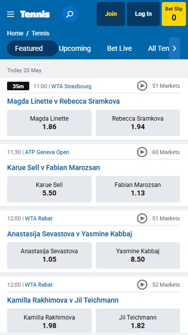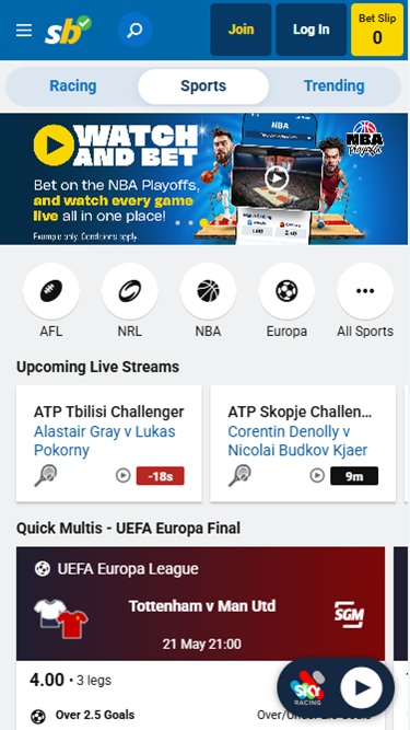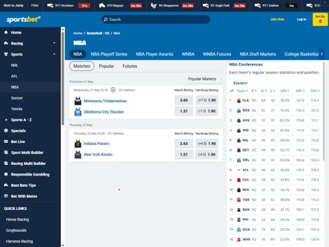 A SportsBet oferece uma boa variedade de opções de apostas esportivas, com mais de vinte modalidades diferentes para escolher. Os apostadores encontrarão futebol australiano, futebol americano, beisebol, hóquei, rúgbi, críquete, dardos, golfe e muito mais, tudo disponível para apostar. A plataforma também inclui eventos ao vivo, permitindo que você faça uma aposta durante um evento específico.
