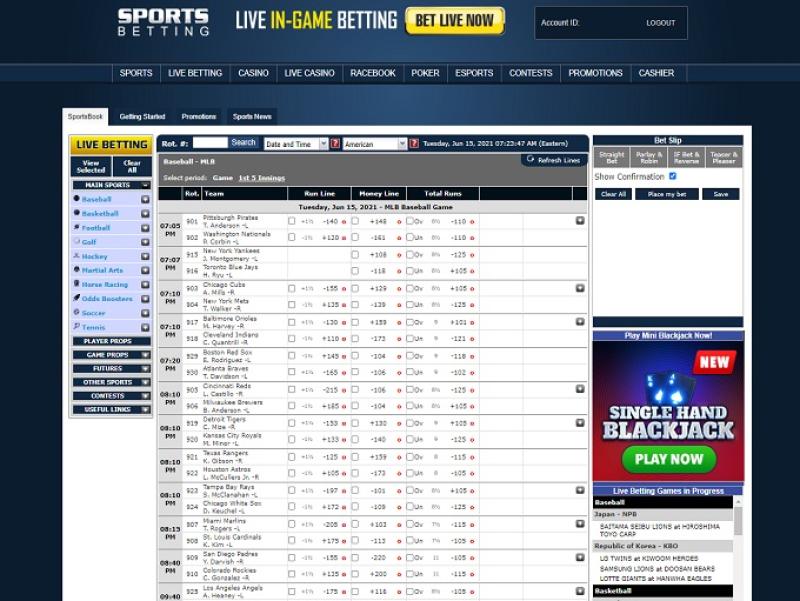 A SportsBetting oferece uma ampla variedade de opções de apostas. Além de apostas esportivas, eles oferecem cassino, cassino com crupiês ao vivo, apostas em corridas de cavalos, pôquer e opções binárias (apostas de curto prazo no comportamento de diversas taxas de câmbio). No entanto, a variedade de esportes para apostar não é muito grande. Basicamente, apenas os principais esportes e as maiores ligas. Mesmo assim, as odds oferecidas são melhores do que a média no geral. Eles também têm algumas apostas incomuns, como apostas detalhadas em jogadores e coisas como teasers de 21 pontos na NFL. No geral, não é uma casa de apostas esportivas comum.