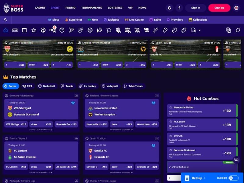 Com um cenário de apostas esportivas incrível e um design excelente para suas opções de apostas, a Super Boss definitivamente cumpre o que promete. Eles oferecem odds fenomenais e uma grande variedade de jogos e apostas para você investir seu dinheiro. Este site tem potencial para se tornar um dos melhores destinos para todas as opções de apostas online, principalmente quando oferecerem apostas em corridas de cavalos e galgos. No geral, a Super Boss impressiona!