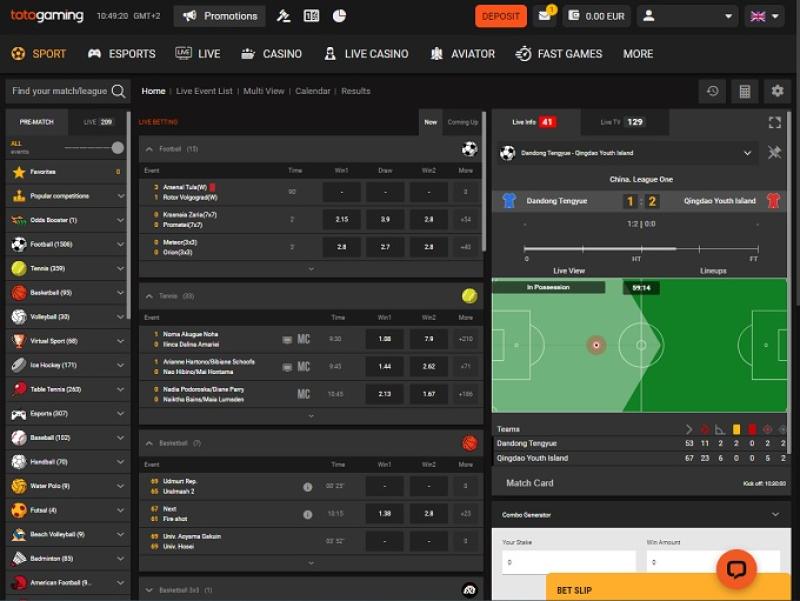 - Tênis – Partidas do Grand Slam e ATP/WTA com opções de apostas ao vivo.