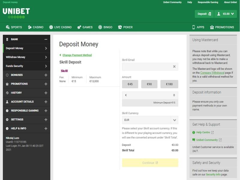 A Unibet oferece diversas opções bancárias excelentes para os jogadores, incluindo Neteller, Skill, Visa, Mastercard, Paysafe Card e muito mais. O site processa os pagamentos para carteiras eletrônicas em até 12 horas, enquanto outros métodos podem levar um pouco mais de tempo. A Unibet paga os ganhos de forma confiável, então você pode esperar receber seu dinheiro logo após enviar sua solicitação.