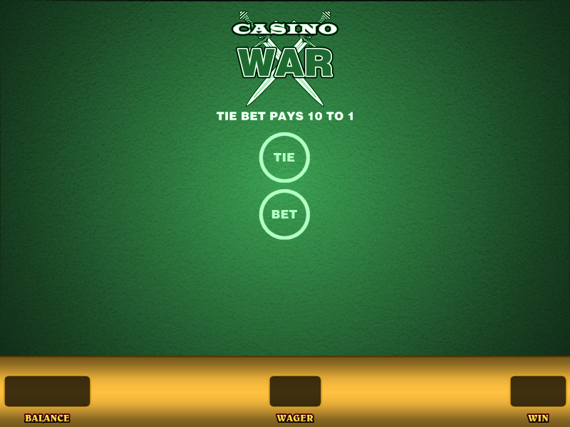 O jogo a seguir é uma Guerra de Cassino . Você deve fazer a aposta principal para jogar e, opcionalmente, também pode apostar no Empate . Após fazer sua(s) aposta(s), o jogo distribuirá uma carta para você e uma para o crupiê; a carta de maior valor vence (ás é a mais alta). Em caso de empate, a aposta no Empate (se feita) paga 10 para 1, e você terá a opção de desistir ou ir para a guerra. Se desistir, você perde metade da sua aposta principal e o jogo termina. Se for para a guerra, você deve fazer outra aposta igual à sua aposta principal, e então você e o crupiê receberão outra carta. Você vence a guerra se a sua segunda carta for igual ou maior que a segunda carta do crupiê. Quando você vence, sua aposta principal paga o valor apostado e, se você foi para a guerra, a aposta adicional é devolvida.