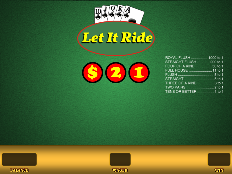 Em Let It Ride, os jogadores tentam criar a melhor mão de pôquer de cinco cartas possível. O que torna o jogo único é que você não joga contra o dealer ou outros jogadores, apenas contra a tabela de pagamentos.