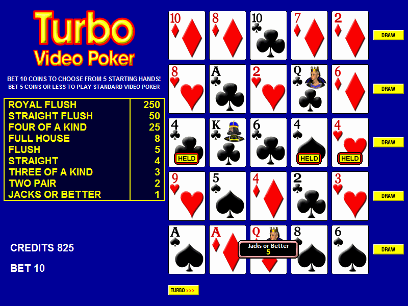 Exemplo de Turbo Video Poker